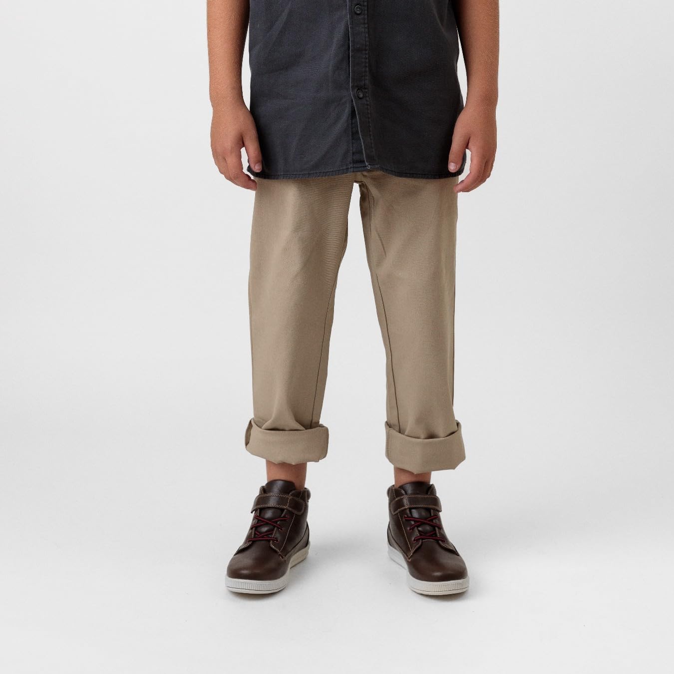 Hiking is only fun when you have comfortable footwear! The Drew hiker for kids is a waterproof ankle-high boot with a gusseted tongue that keeps water out. Made from simulated leather and nylon, with a soft padded collar, fabric lining and contrasting loop eyelets. The lightweight grippy TPR outsole provides traction.