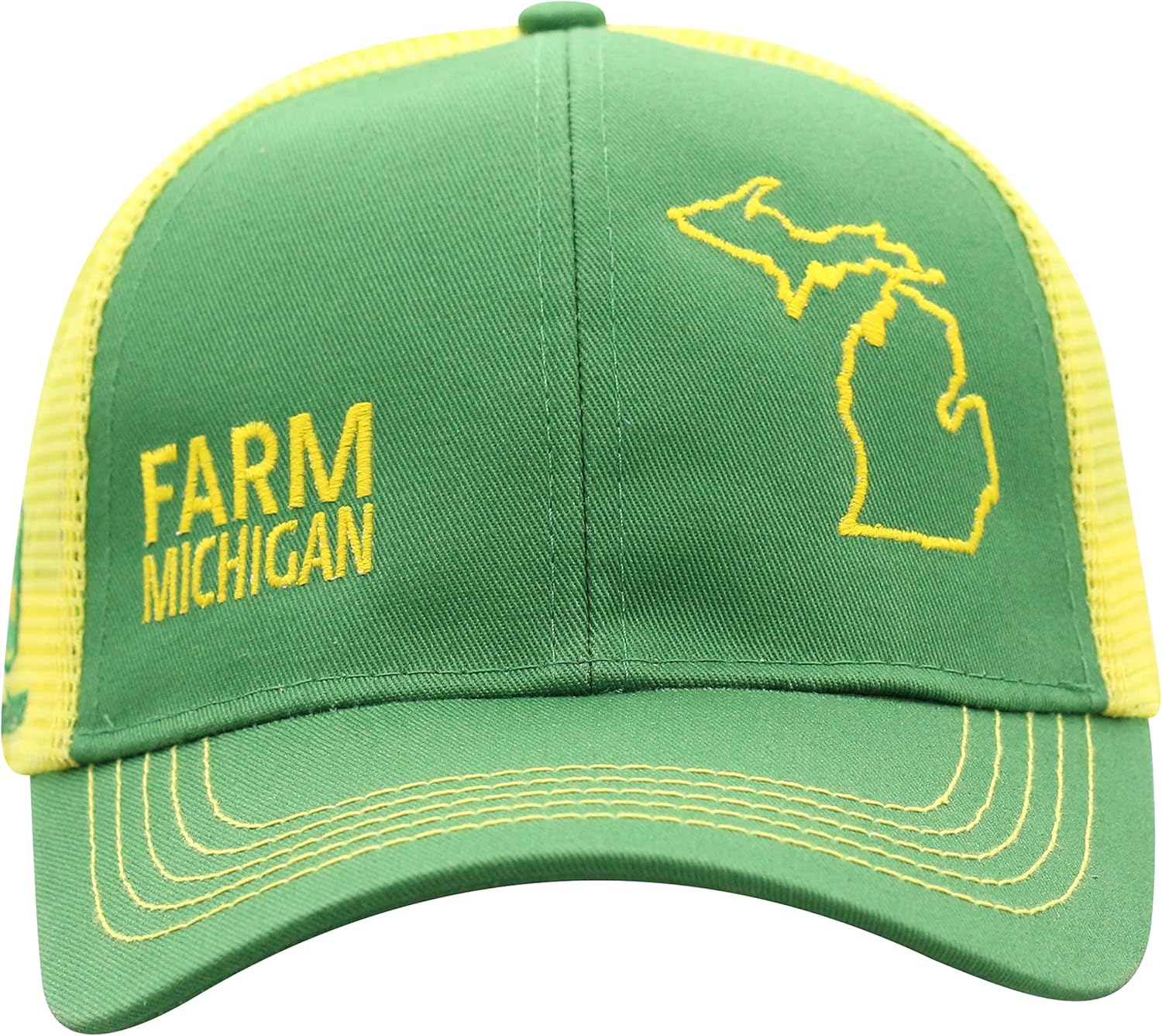 John deere trademark logo cotton twill front and mesh back baseball cap. Six panel structured cap. Available for replenishment 12 year round