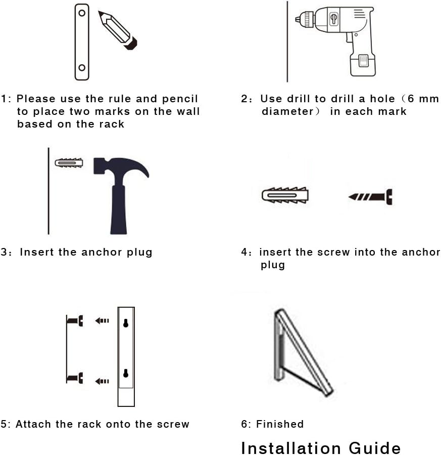 Buyer Attention: there is no bar that goes acrossClothes Drying Rack! Easy to fold away and easy to open. It takes up minimal space unlike the usual hangers! Gives you the convenience of instant extra storage space.It is ideal for small spaces, out-of-the-way corners, bathrooms, beside a pool, and much more! Makes your house looks neat and tidy.It is creative hanger with which one you can no worry about clothes slipping, it takes a little space but hangs enough clothes and can lift about 60 pounds of them. Recommend!It will be very nice to give your guests a place to put their coats on hangers, instead of the traditional "just throw your coats on the bed". Or perhaps you'd like a rack where the family can hang their winter coats during the cold weather, but will fold up and disappear in the summer when coats are packed away.Specification:Brand name:AnjuerMaterial: Aluminum + IronNet weight:About 1LB (0.47KG)Package include:2 x Bracket4 x Anchor plug 4 x ScrewInstallation guide: 1. Draw two marks on the wall at which you decide to install the rack2. Drill a hole on each mark using a 6 mm (diameter) drill bit3. Insert the anchor plugs, mount the bracket(grooves upward) using the screws provided 4. Attach the rack to the bracket. Quick installation!Please note:1.Please allow 0.1% defective rate, any quality or service issues, pls contact us first, we are promise to give you better solution, thanks very much for support.2: The bar is not included.